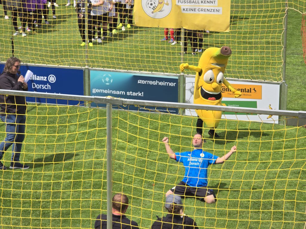Nun hat so ein junger Kerl natürlich noch andere Hobbies und so ist Tobi mit Herz und Seele Torwart der „Whites“ – also des weißen Teams der Bananenflanke in Regensburg.
